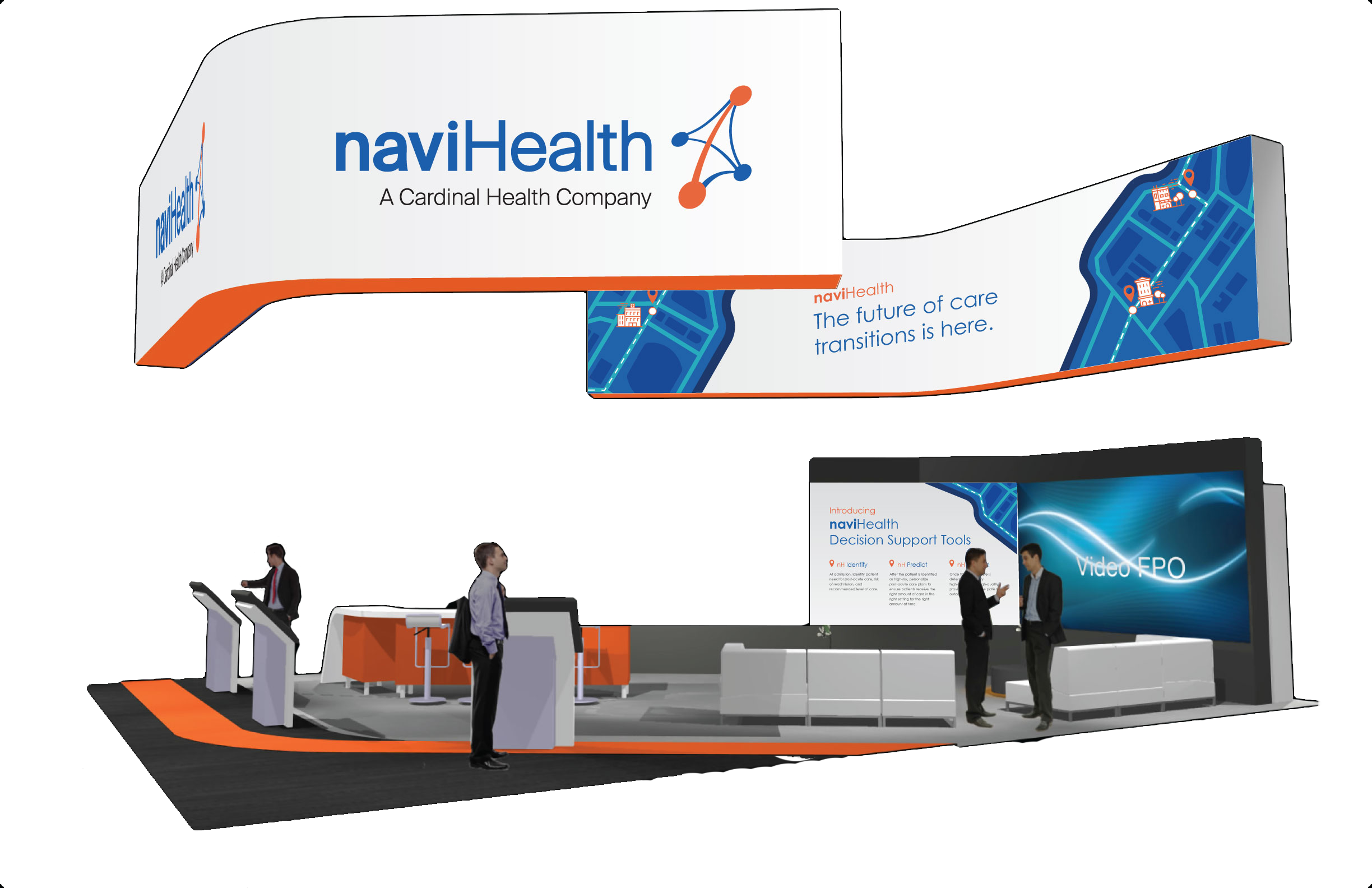 I was tasked with creating the theme and all marketing materials for naviHealth at HIMSS, medical technology conference. After acquiring Curaspan Health Group, naviHealth wanted a design that both represented the newly expanded company as well as the several new product offerings available after the aquisition, such as decision support tools. The GPS theme was developed to demonstrate naviHealth’s ubiquity, wealth of information and accuracy to support a patient throughout their journey between healthcare facilities.