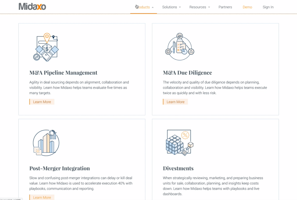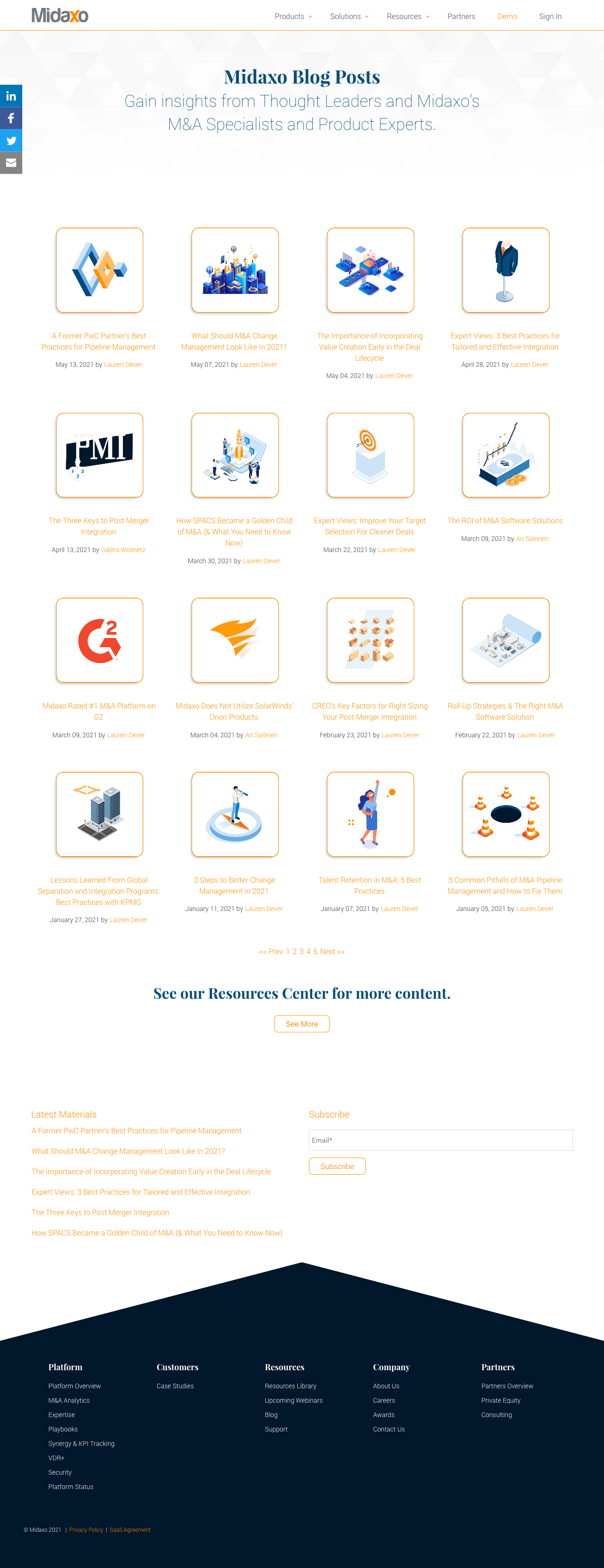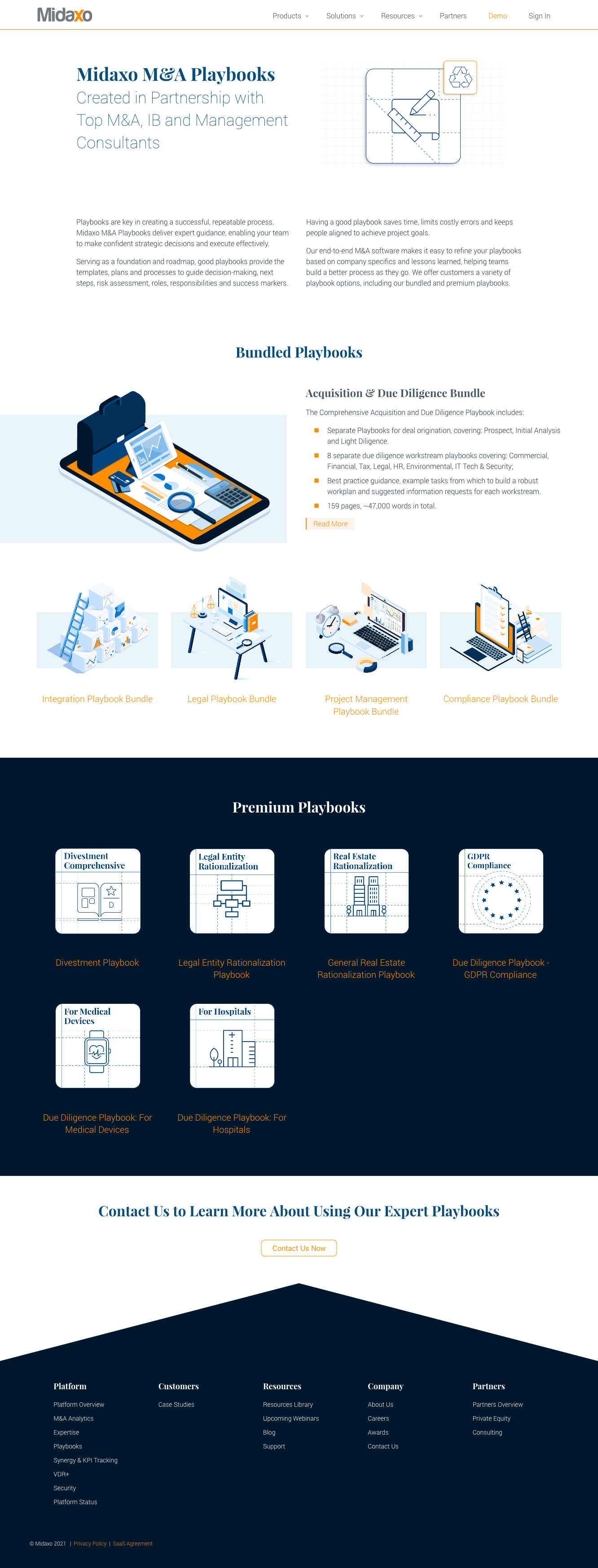 Midaxo’s website was a high-priority project for the company. Brand consistency, clear and concise written and visual description of what the company does, updated navigation, as well as driving site visitors to the product demo request form, were all problems to tackle. Additionally, Midaxo had a large collection of multimedia thought leadership content that they wanted organized and available to visitors.